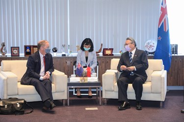 紐西蘭商工辦事處馬嘉博(Mark Pearson)代表一行人,昨(21)日拜會台中市政府,此為馬代表首次到訪市府,雙方就教育、原住民、消防救災等議題進行意見交流,馬代表也尋求未來共同合作的機會。副市長令狐榮達除表示歡迎,也盼後疫情時代,各項國際經貿、文化活動復甦之際,台紐雙方能推動更多交流。