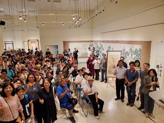 盧市長表示,她擔任電視台採訪主任時,時常報導藝文活動,採訪過王雙寬老師,是30年以來的老朋友,今日用展覽方式表達對他的尊敬與紀念,祝大師80歲生日快樂。王老師對台灣藝壇貢獻大,備受景仰,是細膩又豪邁的人,他的筆觸細膩,又具領導能力,一生最愛畫關公及岳飛,正氣凜然,在推動藝術、提攜後進不遺餘力。