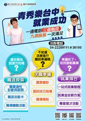 鼓勵待業青年積極尋職、穩定就業。台中市政府勞工局持續推動「獎勵青年就業計畫」,今年全國首創新增「弱勢青年就業獎勵金」,針對設籍台中市29歲以下低收、中低收入戶或背負學貸壓力的弱勢青年,經推介就業滿3、6個月,各加碼發給5,000元獎勵金,就業滿6個月最高可領3萬5,000元獎勵金,截至今年9月15日共協助超過50名弱勢青年就業成功,減輕就業初期經濟負擔。