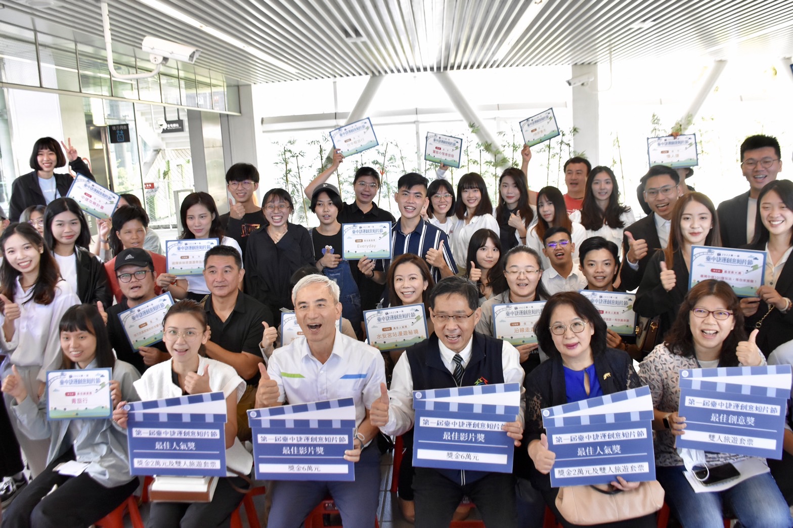 今日頒獎典禮由經發局長張峯源、台中捷運公司董事長林志盈及評審老師逢甲大學教授鄭圓圓、亞洲大學助理教授楊靜瑜共同頒獎。張局長表示,為打造台中捷運經濟生活圈,市府啟動「捷運新經濟 台中邱比特」計畫系列活動,首波活動「台中捷運創意短片節」,希望藉由民眾及旅客力量,以影片方式呈現捷運與這座城市的想像,激發捷運多樣玩法,同時吸引更多市民朋友搭捷運遊台中,進一步促進沿線店家消費,帶動城市軌道經濟。