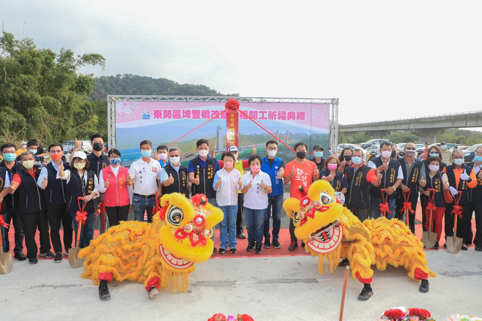 今日開工典禮,盧市長、立法委員江啟臣、市議員張瀞分、冉齡軒、陳本添、謝志忠、建設局長陳大田、市府客委會主委江俊龍、東勢區長翁培真、豐原區長洪峰明、石岡區長劉素幸、新社區長林淑惠及東勢、豐原、石岡在地多位里長等均出席,市議員陳清龍、蔡成圭也派代表共襄盛舉。(10/21*7)*建設局