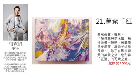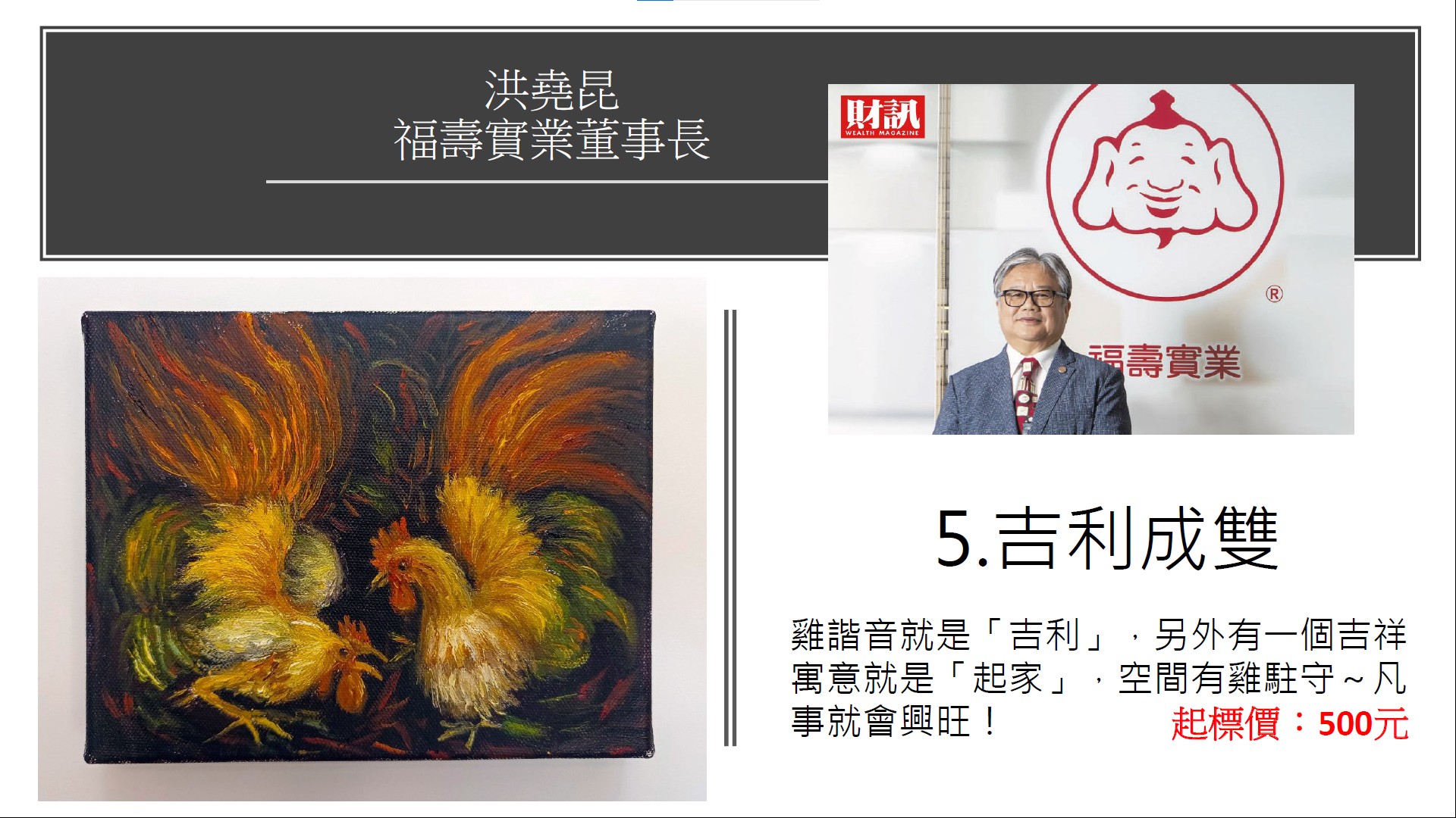 宏恩基金會吳董事長表示,為照顧各地區的身心障礙朋友,和夫人林豐麗女士創辦宏恩喜願家園,善用自身醫療專業,收容身心障礙中度以上及慢性精神障礙病友143人,提供病友各式訓練和認知課程,感謝工策會和跨交會經營者組的企業家,透過此次慈善藝術品競拍捐贈給予病友和團隊最好的支持。