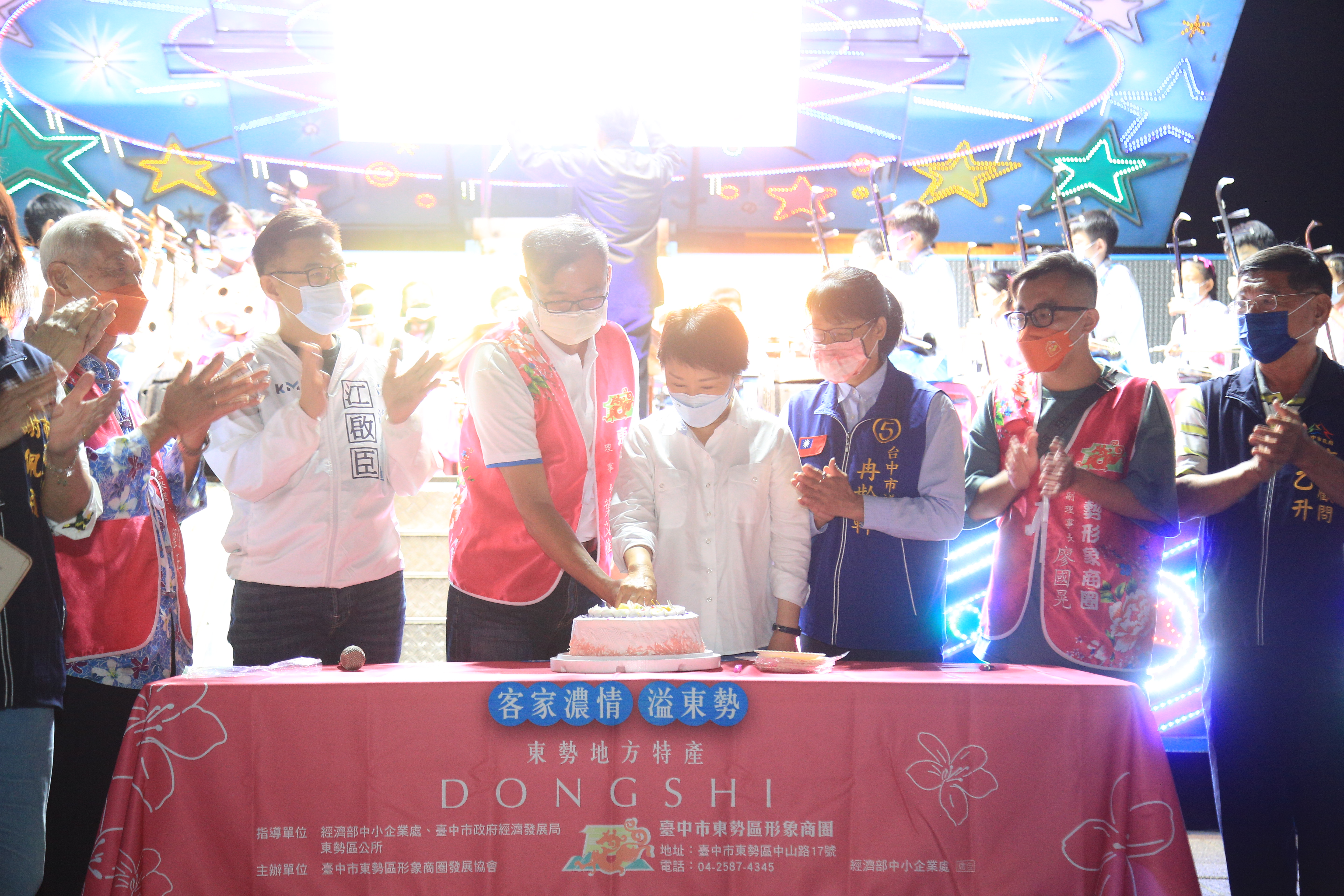 台中市東勢區形象商圈今(26)晚舉辦歡慶「魅梨無邊勢不可擋」20週年活動,市長盧秀燕出席祝賀東勢商圈生日快樂,也祝福在場商家、鄉親未來都能鴻圖大展、生意興隆;盧市長今日也分享2大好消息,一是投入150億元經費的東豐快速道路下個月將要復工,二是台中市在全國22縣市經濟統計數據奪冠,成績豔壓群雄;市府將持續努力,也盼帶動東勢地區經濟長紅、邁向下一個20年。
