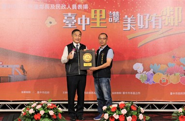 黃副市長代表盧市長頒贈獎牌,感謝潭子區里鄰長的辛勞付出