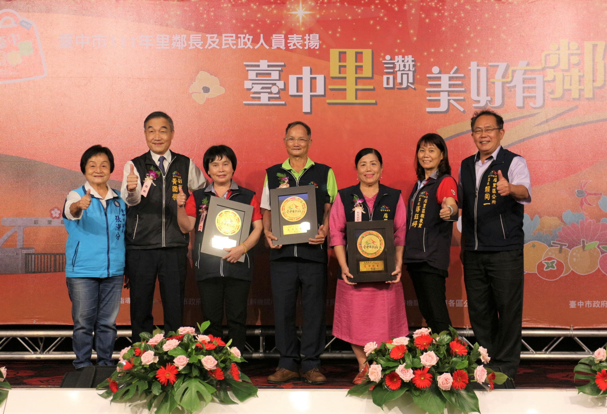 民政局說明,台中市今年度舉辦4場(城區、屯區、海線、山線)里、鄰長及民政人員表揚活動,表揚全市55名特優里長、26名績優民政人員、921名績優鄰長及246名服務年資超過20年的資深鄰長,共1,248人獲獎,感謝里鄰長及民政人員長期的辛勞付出及奉獻,期盼持續與市府攜手,打造台中成為最宜居城市。