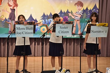 參賽學生分享,他每天主動練習,並犧牲周末時光到校練習,雖然辛苦,卻學會用不同的表演技巧以英文呈現故事內容,付出這麼多時間練習,希望能獲得佳績,也感謝老師給予機會參與比賽,相信經過比賽洗禮,對未來學習更有幫助。