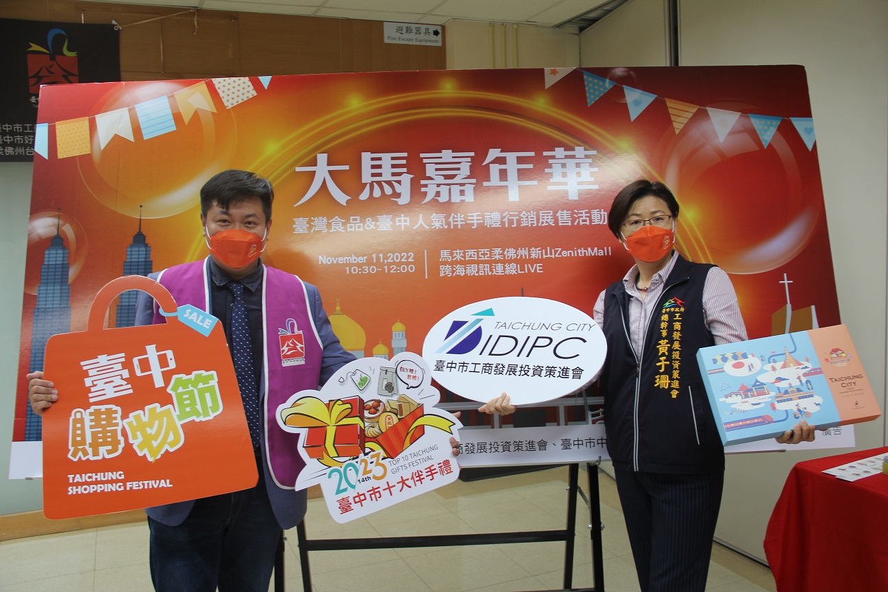 因應國境解封,台中市工商發展投資策進會搶搭雙11優惠列車,攜手台中市好禮協會帶領伴手禮業者南進拓展海外商機,今(11)日至13日於馬來西亞柔佛州新山Zenith購物中心舉辦限時三天快閃「大馬嘉年華─台灣食品&台中人氣伴手禮行銷展售活動」,上午11時11分於當地舉行開幕剪綵儀式,工策會也邀請13家業者到場設攤展示、跨海視訊連線分享喜悅。