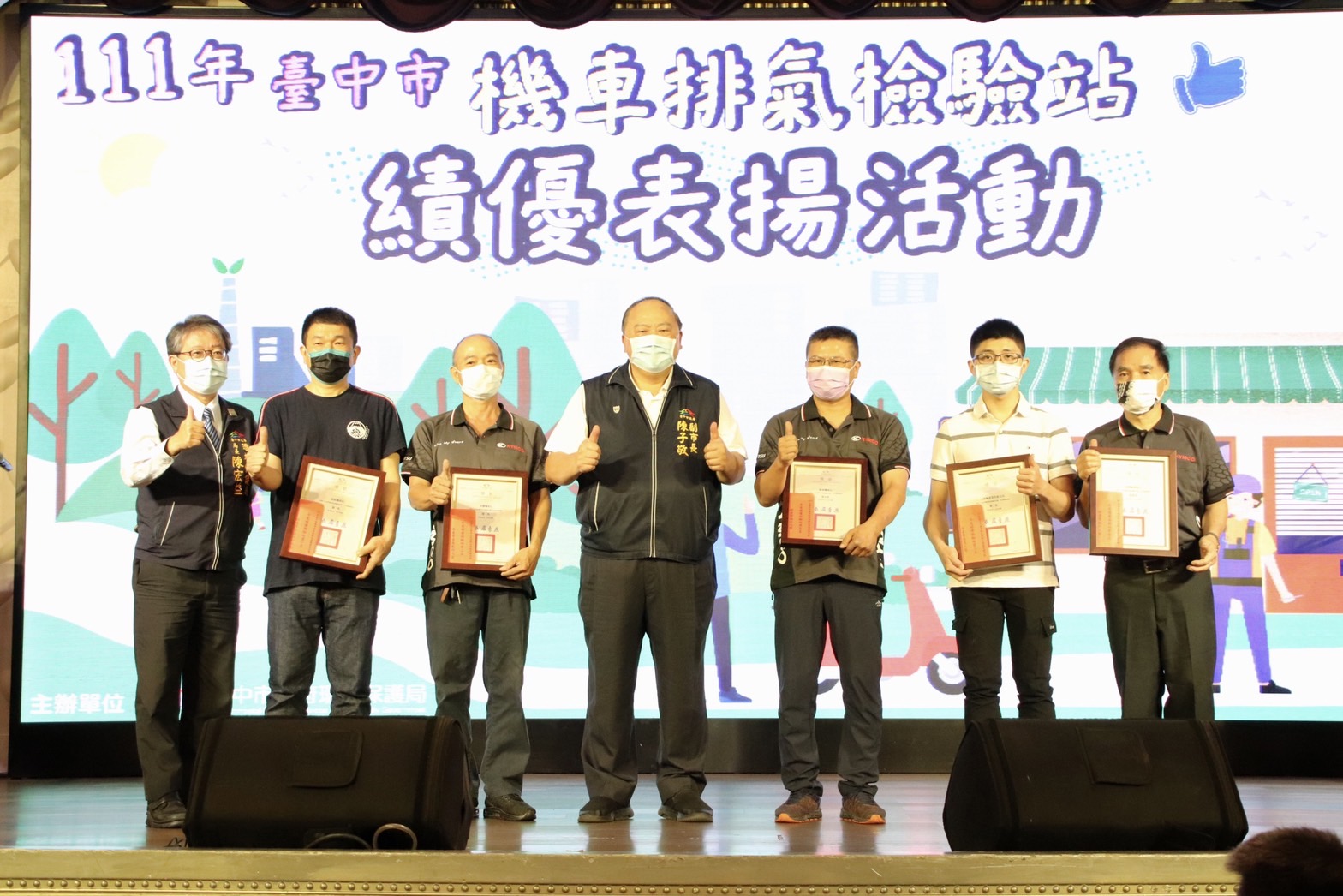 環保局指出,台中市目前共有450家領有認可證的檢驗站,環保局特別針對各檢驗站的檢測環境、檢測儀器保養狀況、文件品管及服務態度等服務品質評比,今年評選出「崑松機車行」等20家檢驗站為「年度績優檢驗站」;為促進各檢驗站良性競爭,鼓勵檢驗站協助宣導民眾落實機車排氣定檢,特別頒發「機車檢驗數績優獎」,評選出「宥佳輪業行」等10家檢驗站;另推動老舊機車汰換補助政策,針對鼓勵民眾汰換老舊機車績效優異者頒發「汰舊卓越獎」,評選出「順發車行」等10家檢驗站,共40家檢驗站獲獎,提升台中市機車定檢率、老舊機車汰除率及降低高污染車輛排放廢氣對城市環境及市民健康的危害。