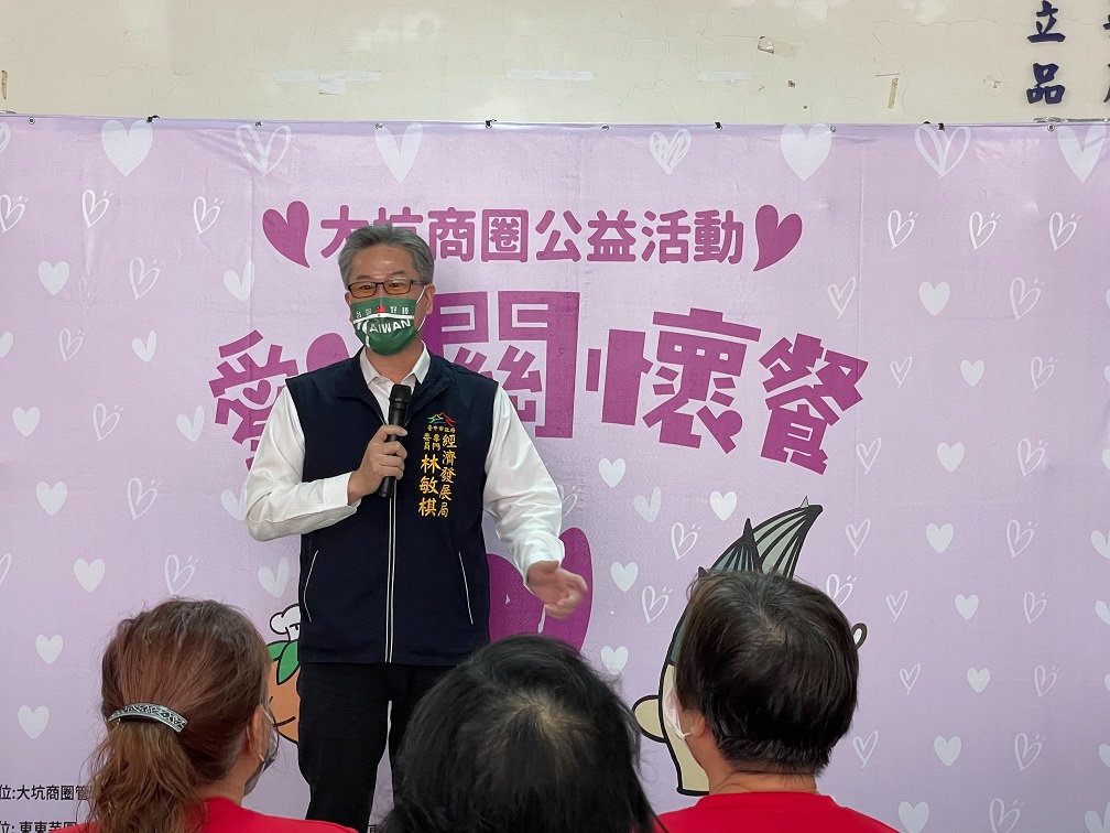 台中市政府經濟發展局輔導台中市大坑商圈昨(30)日於台中地區農會大坑辦事處旁舉辦「2022大坑商圈公益活動 愛心關懷餐」活動,邀請「優樂齡社區關懷團體」長者品嘗大坑經典美食。經發局表示,大坑嘉年華千人辦桌宴自95年舉辦以來,已成為大坑最經典的特色活動,今年因應疫情縮小規模,藉由愛心關懷餐送暖更溫馨。