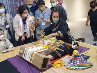 今日論壇,文化局長陳佳君、泰雅族耆老弗耐.瓦旦、人間國寶尤瑪.達陸、菲律賓基亞南織者協會理事長Paulette Crespillo-Cuison、菲律賓基亞南織者協會創辦人Marlon Martin、科迪勒拉區國家博物館長Eulalie Dulnuan、布農族織布工藝師翁麗娃、阿布斯布農傳統服飾工作室工藝師邱春女、布農族工藝師余青媛、糸糸績地工作室工藝師胡郁如、工藝師馬毓秀、陳如萍、國立自然科學博物館研究員陳叔倬、泰雅族文史工作者悠蘭.多又、酔織黃天然染織工坊負責人黃英明及新北市烏來區原住民編織協會總幹事范月華等人均到場參與。(12/4*7)*文化局