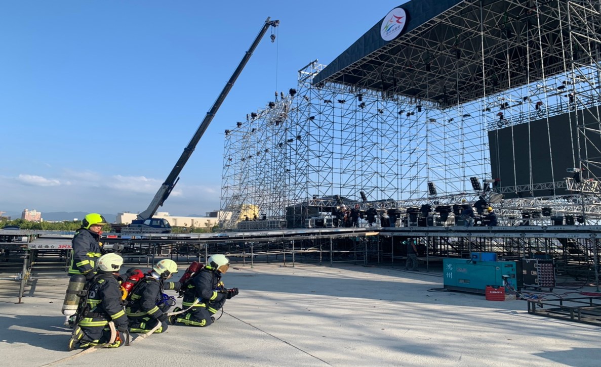 中市消防局針對跨年舞台周邊進行實地搶救演練