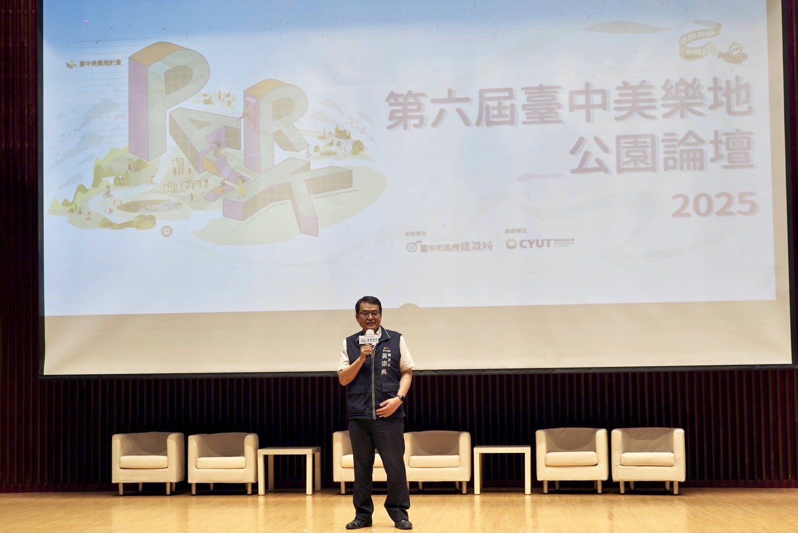 台中市政府今(1)日在市政大樓四樓集會堂舉辦「第六屆美樂地公園論壇」,由秘書長黃崇典代表市長盧秀燕主持,吸引超過633人到場參加,觀看線上直播更破1,000人次,盛況空前、再創論壇新高峰;今年論壇以「碳索未來:淨零公園Ⅹ綠色未來」為主題,聚焦碳中和與淨零碳排等永續議題,特別邀請國內專家及日本國際級重量級講者,帶來四場精彩的實務分享與交流。同時,現場也舉行學生競圖獲獎作品頒獎典禮,展現青年創意與永續設計能量。