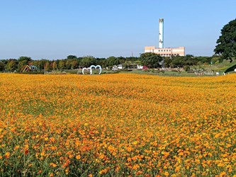 「讓城市幸福蛻變」是台中市長盧秀燕施政的核心理念。台中四季各有不同風貌,市府建設局持續推動公園綠美化,讓市民能在城市中隨時親近自然,享健康、舒適的休閒空間。隨著秋意逐漸濃厚,位於后里的環保公園近日成為熱門話題,建設局長陳大田表示,大片黃波斯菊花海正值盛放,金黃花浪隨風搖曳、燦爛如陽光地毯,邀請市民共賞季節限定美景。