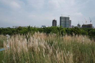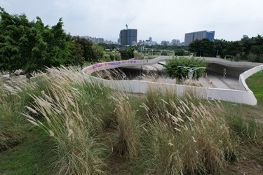 建設局長陳大田說明,中央公園五節芒草區的設計特別考量植物的永續性與自然生態平衡,融合自然生態理念,利用五節芒草耐旱、易生長的特性,搭配高低層次的草木配置,與公園地形及步道相結合,不僅減少維護成本,也營造出富含季節特色的植物景觀及都市生態棲息遷移之空間。