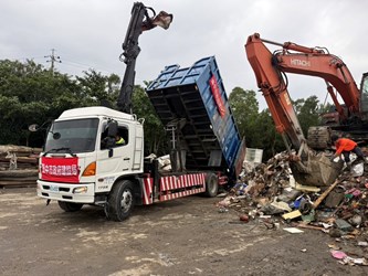 建設局指出,颱風過後淤泥與廢棄物大量堆積,各區復建需仰賴人力與機具密集投入。此次台中隊出動多部山貓、抓斗車及20名以上熟練人員,與地方團隊緊密合作,不僅加速道路通行恢復,也協助校園與社區盡早回到正常生活軌道。