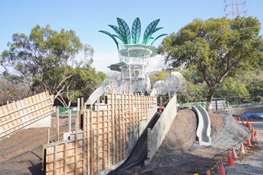 建設局表示,鰲峰山「谷溜遊戲場」基地面積約3,500平方公尺,總經費約7,625萬元,以「全國最多溜滑梯遊戲場」為設計目標,規劃多層次遊戲動線,結合大型遊戲塔、滾輪滑梯、攀爬設施、沙坑區及高架步道等多元設施,並導入通用設計理念,打造全齡共融的親子遊憩空間,目前工程進度穩定,預計於115年3月完工。