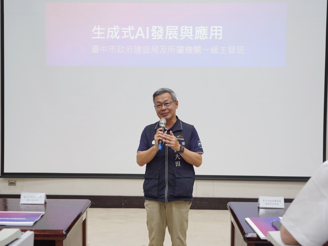 為落實盧秀燕市長「數位台中」政策,台中市政府建設局積極導入人工智慧(AI)技術,將大數據與智慧感測深度應用於市政治理與便民服務。建設局今(17)日舉辦「生成式 AI 發展與應用建設局一級主管班」,由建設局長陳大田親自主持,特別聘請天思數位科技郝振宇董事長及人工智能股份有限公司張榮貴董事長擔任講者,局內及所屬機關共 54 位核心幹部率先共學,期盼透過高階主管的數位領航,帶動全局轉型動能,建立以數據為核心的公共工程管理新文化。